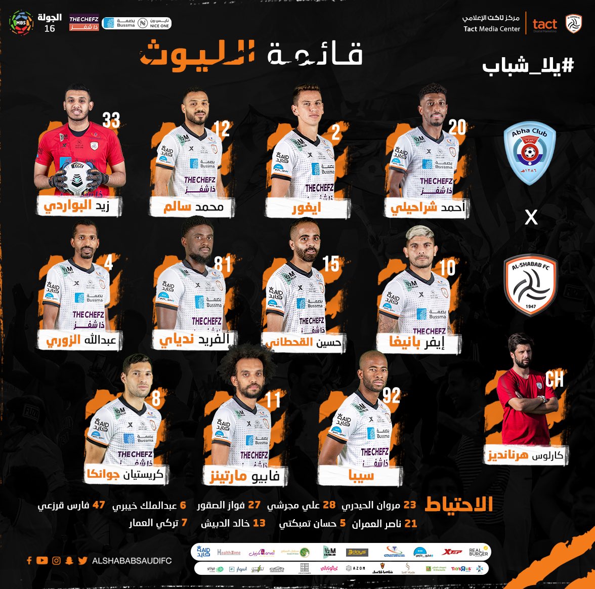 تعرف على تشكيلة الشباب وأبها بافتتاح منافسات الدوري السعودي