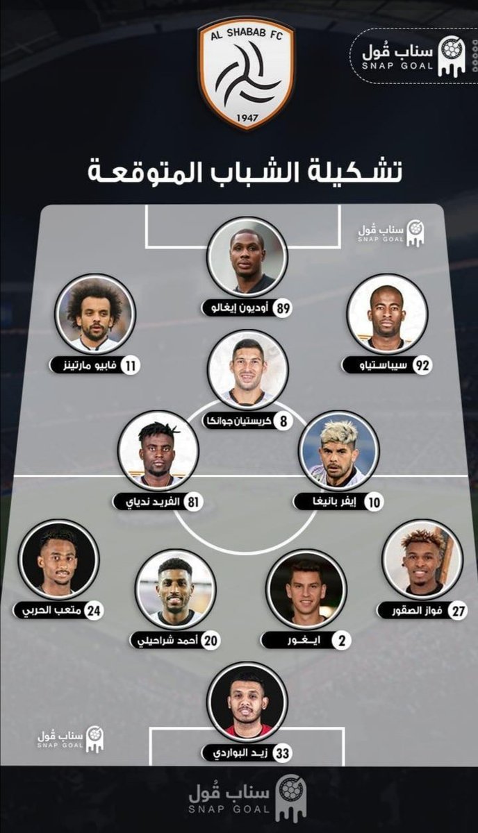 التشكيلة الأساسية هيبرتي وسباستيان يقودان القوة الضاربة للشباب أمام الأهلي هاي كورة النسخة السعودية